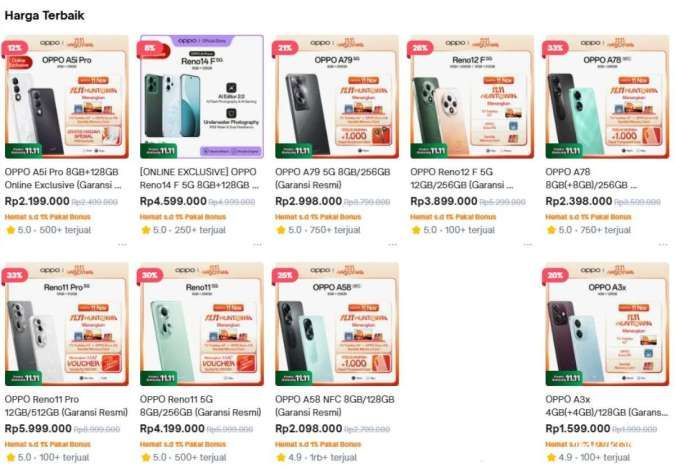 Untuk lebih lengkapnya, berikut adalah daftar harga HP OPPO terbaru yang mendapatkan potongan pada periode promo 11.11 di November 2025: