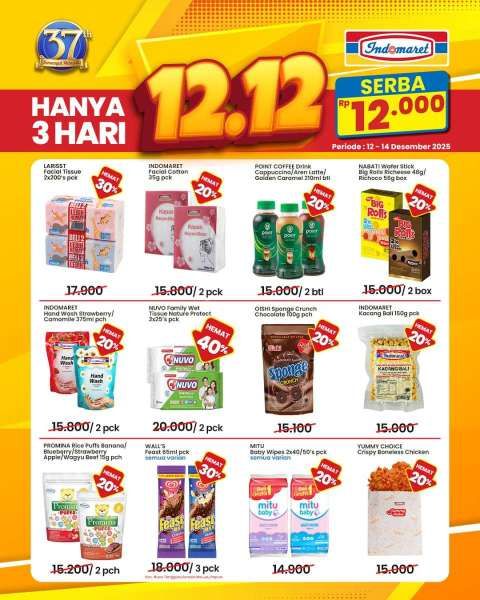 Promo 12.12 di Indomaret memberikan harga serba Rp 12.000 yang berlaku selama 3 hari tersebut.