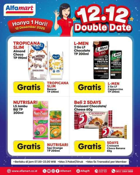 Dikutip dari akun Instagram Alfamart, promo 12.12 ini berlaku mulai pukul 07.00-23.00 WIB saja.