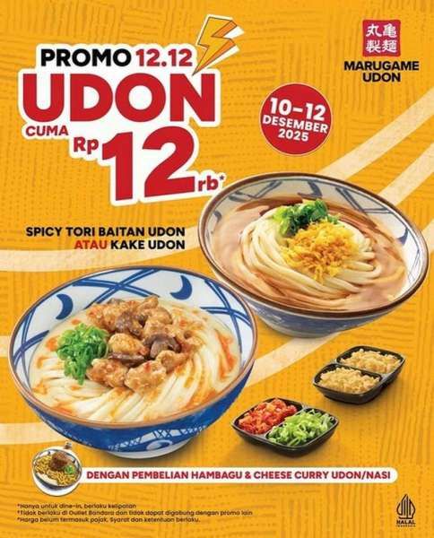 Selain itu, promo Marugame Udon 12.12 berlaku di seluruh outlet Marugame Udon Indonesia kecuali di bandara.