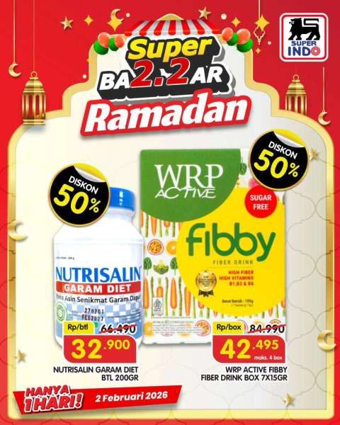 Belanja WRP Active Fibby diskon 50% atau seharga Rp 42.495 saja di promo 2.2 Superindo hanya hari ini.