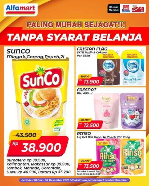 Itulah deretan produk di promo Alfamart paling murah sejagat. Promo Alfamart paling murah ini berlaku khusus member.