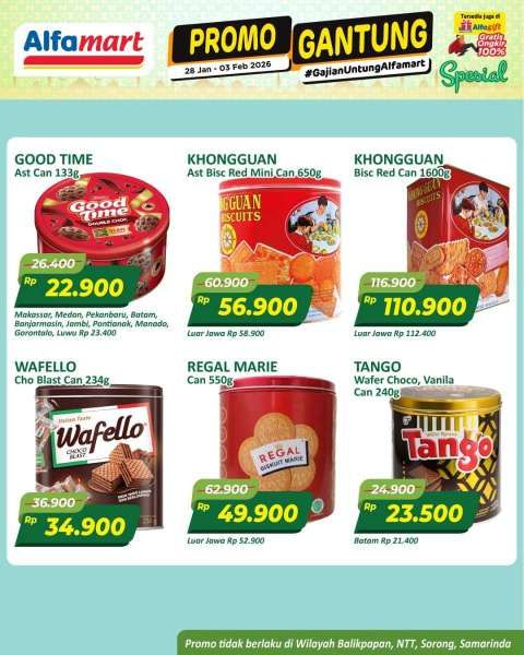 Deretan diskon di promo Alfamart gantung di atas tidak berlaku di Balikpapan, NTT, Sorong, dan Samarinda.