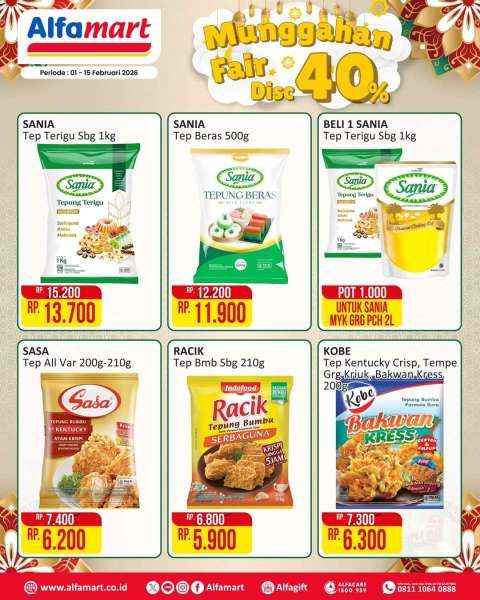 Di promo Alfamart munggahan ada produk kebutuhan dapur yaitu tepung terigu atau tepung beras Sania harga mulai Rp 11.900.