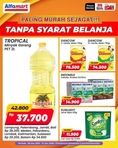 Produk-produk harga hemat ini berlaku khusus untuk member Alfamart saja dan tanpa syarat belanja minimal.