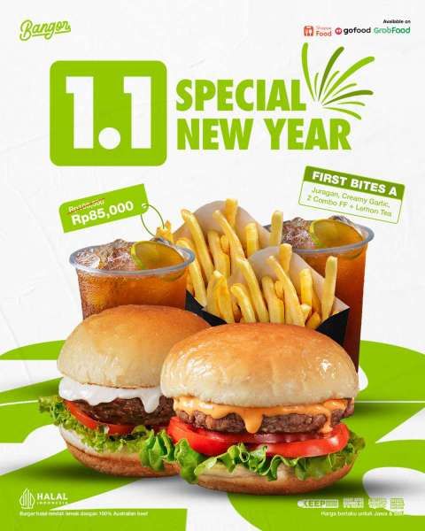 Dikutip dari @burgerbangor di Instagram, ada promo Burger Bangor 1.1 spesial tahun baru 2026.