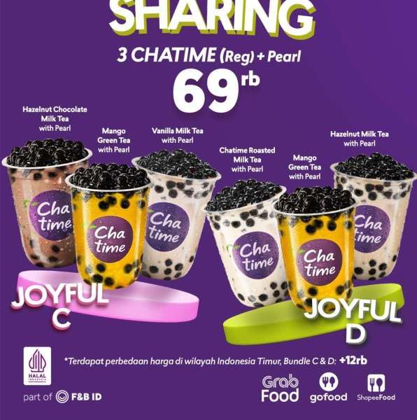 Ada pilihan paket joyful C atau joyful D dengan varian yang berbeda di promo Chatime terbaru ini.