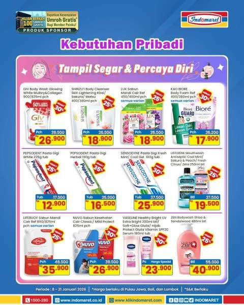 Selain itu, Indomaret menyiapkan promo sabun mandi cair kemasan pouch harga lebih hemat di bulan Januari 2026.