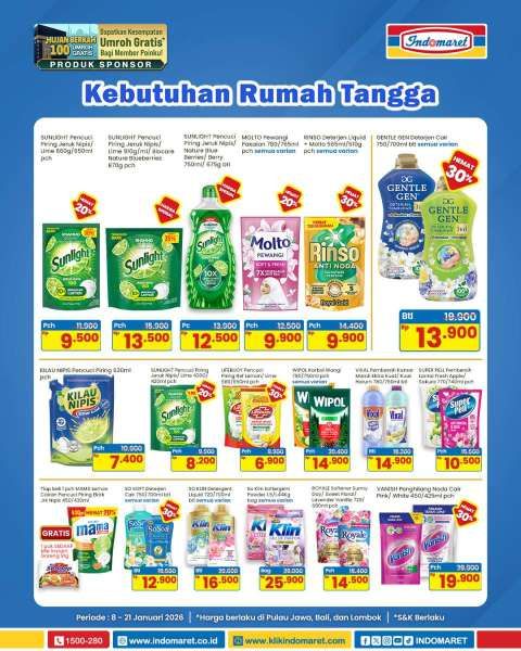 Promo deterjen di Indomaret ini dapat dilihat dalam katalog promo super hemat mulai 8-21 Januari 2026.