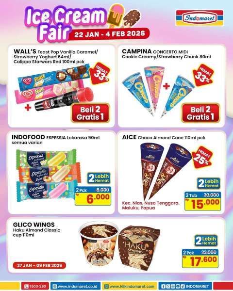 Indomaret juga menawarkan banyak promo es krim lainnya yang berlaku sampai bulan Februari 2026 mendatang.
