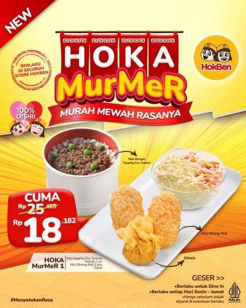 Ada promo HokBen murah meriah dengan 4 pilihan menu harga cuma Rp 18.182 saja sampai 31 Desember 2025.