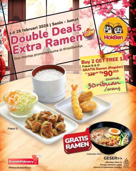 Selain itu HokBen juga menyiapkan promo beli 3 gratis 1 ramen yang berlaku di bulan Februari 2026 ini.
