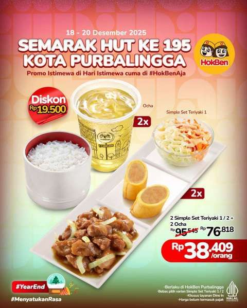 Dilansir dari akun Instagram HokBen (@hokben_id), ada diskon Rp 19.500 di promo HUT kota Purbalingga ke-195.