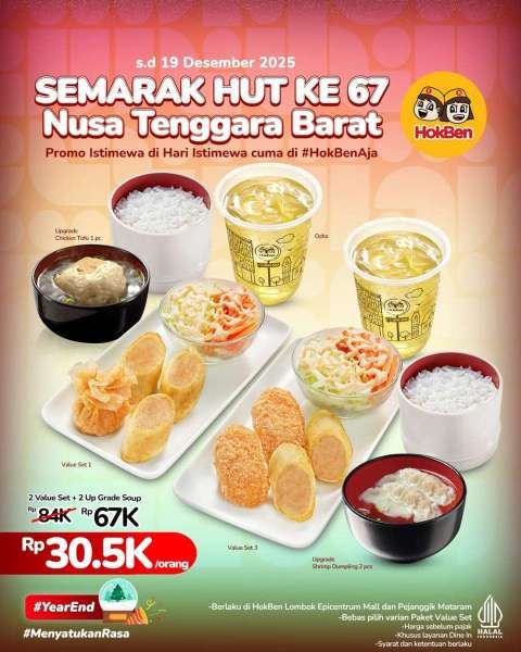 Salah satunya adalah promo HokBen spesial merayakan hari ulang tahun Nusa Tenggara Barat yang ke-67.