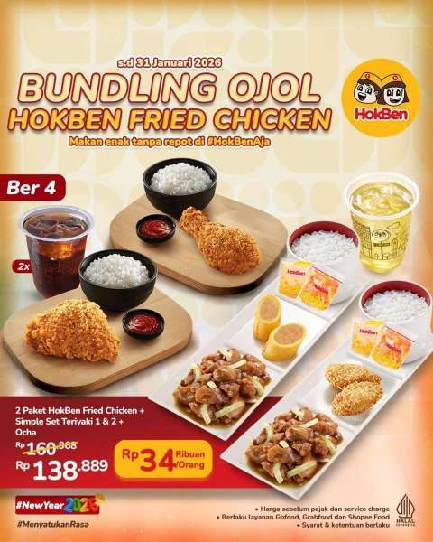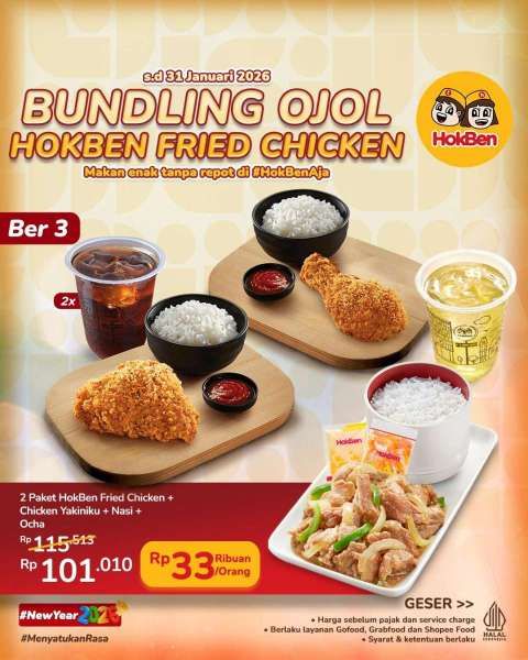Di promo HokBen bulan Januari 2026, ada 3 pilihan paket bundling spesial ojek online sampai 31 Januari 2026.