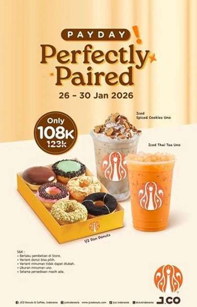 Dapatkan promonya di outlet J.CO terdekat selama persediaan masih ada sampai 30 Januari 2026 mendatang.