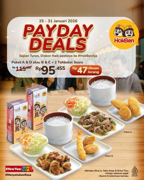 Dikutip dari akun @hokben_id di Instagram, ada promo HokBen payday yang berlaku sampai 31 Januari 2026.