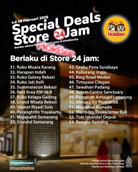 HokBen di bulan Februari 2026 menghadirkan banyak promo seperti promo munggahan dan promo Valentine.