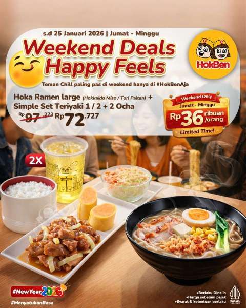 Promo HokBen weekend di bulan Januari 2026 hadirkan hoka ramen large dan simple set teriyaki beli 2 Rp 72.727.