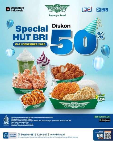 Promo HUT Bank BRI terbaru ini meramaikan penawaran menarik di Wingstop pada bulan Desember 2025.