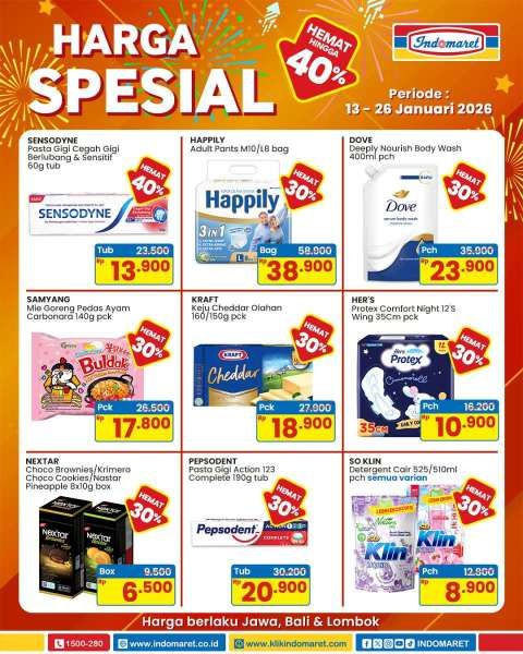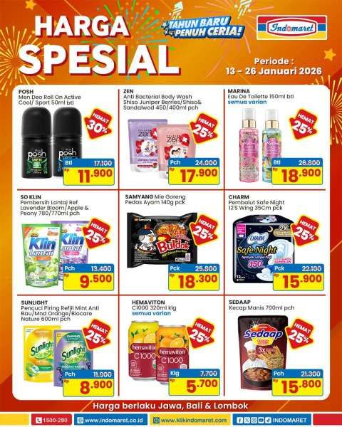Indomaret melalui akun @indomaret di Instagram merilis katalog promo harga spesial terbaru mulai Selasa, 13 Januari 2026.