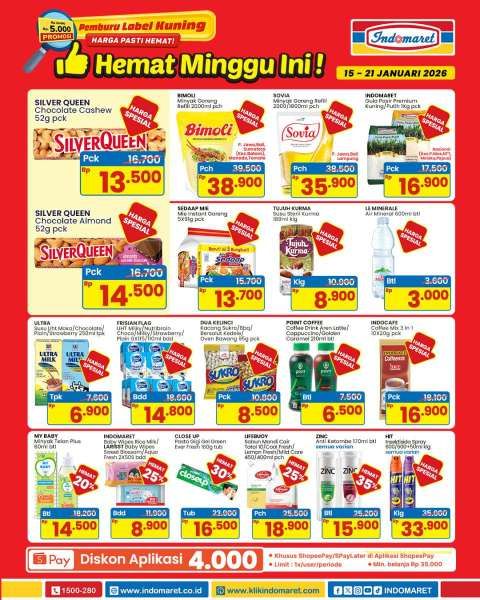 KONTAN.CO.ID - Ada Silver Queen dan mie Sedaap harga spesial di promo Indomaret 15-21 Januari 2026. Cek harga produk lainnya di Indomaret terbaru.