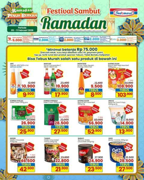 Berlaku selama 7 hari, inilah sirop hingga biskuit harga spesial di promo Indomaret sambut Ramadan 2026.