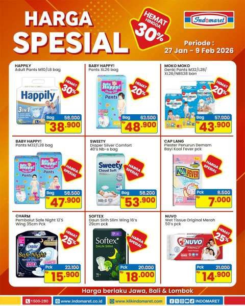 Promo Indomaret harga spesial yang terbaru di akhir bulan Januari ini menawarkan berbagai diapers bayi lebih murah.
