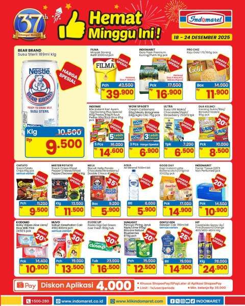 Belanja produk Indomaret hemat minggu ini dan dapatkan diskon Rp 4.000 jika bayar dengan aplikasi ShopeePay.