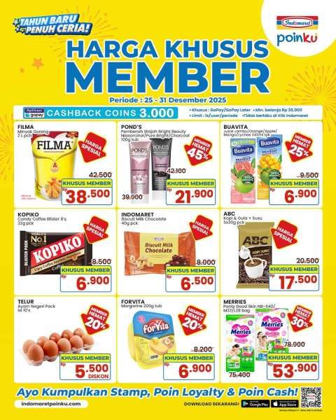 Inilah produk-produk di Indomaret yang bisa didapatkan dengan harga khusus member di akhir tahun 2025.