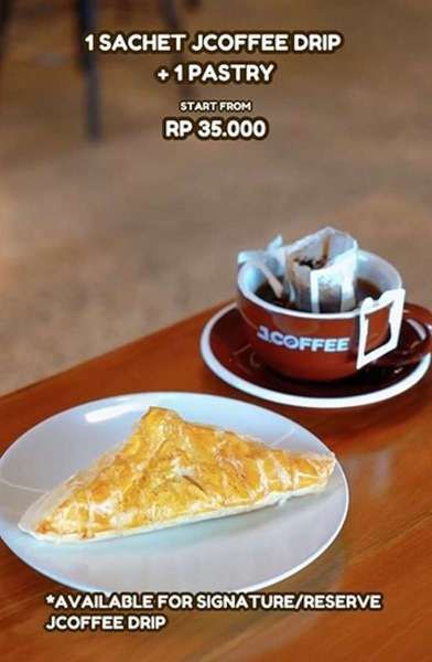 Ada 1 coffee drip signature ditambah 2 donut atau 1 pastry harga mulai Rp 35.000-an. di J.CO.