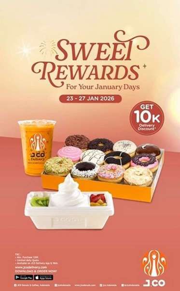 Promo J.CO terbaru di bulan Januari ini menyiapkan diskon Rp 10.000 khusus pemesanan delivery.