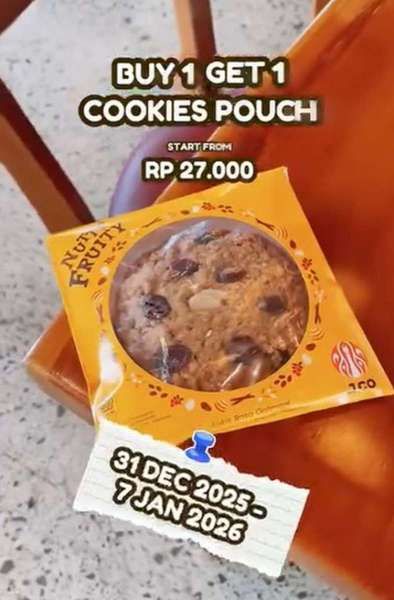 Nikmati cookies pouch bersama teman atau keluarga untuk mengawali tahun baru 2026 dengan rasa yang manis.