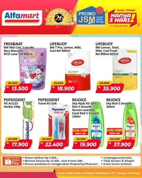 Belanja produk promo JSM Alfamart dan dapatkan diskon Rp 5.000 khusus dengan aplikasi ShopeePay.