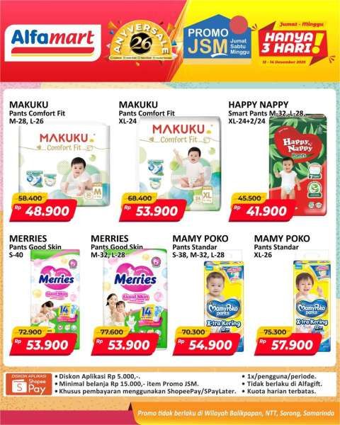 Katalog promo JSM Alfamart terbaru di pertengahan Desember 2025 menyiapkan diskon untuk popok bayi.