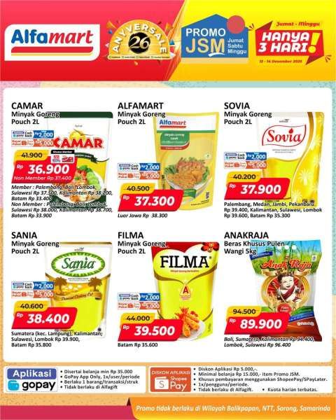 Harga promo minyak goreng di JSM Alfamart ini berbeda-beda untuk setiap wilayah seperti Batam sampai Lombok.