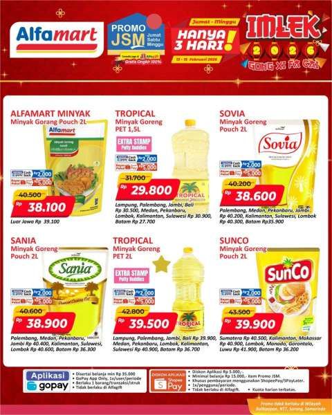 Di promo JSM Alfamart menjelang Imlek ada banyak minyak goreng 2 liter dengan harga lebih terjangkau.