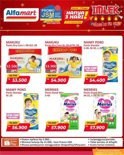 Di promo JSM Alfamart ada produk kebutuhan harian seperti popok Sweety, Makuku, Mamy Poko, dan Merries lebih murah.