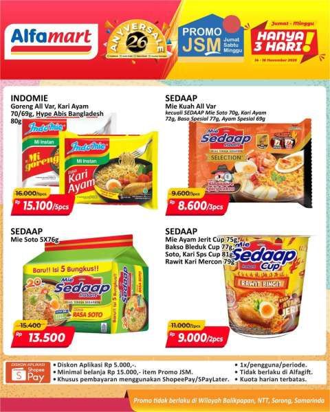 Promo JSM Alfamart kembali memberikan beli banyak lebih hemat untuk mie instan Indomie atau Sedaap.