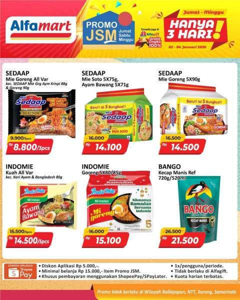 Inilah produk-produk yang bisa didapatkan di promo JSM Alfamart terbaru pada awal bulan Januari 2026.