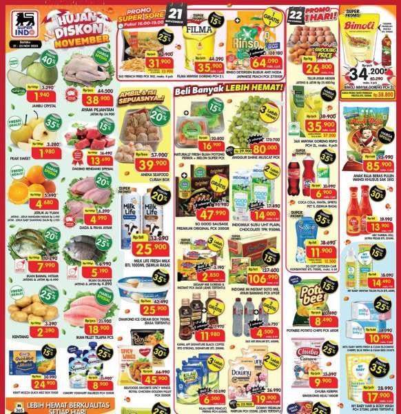 Belanja Filma 2 liter Rp 35.900 atau Rinso bubuk Rp 64.000 di promo JSM Superindo hanya hari ini, 21 November 2025.