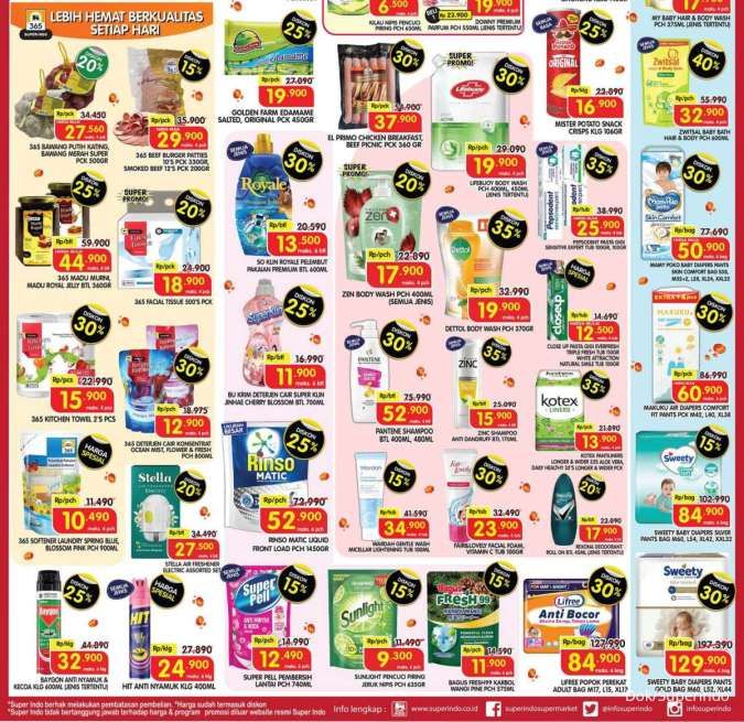 Ada shampoo Zinc Rp 15.500, Pantene Rp 52.900, Close Up Rp 12.500 dan Pepsodent sensitif Rp 25.900 di Superindo.