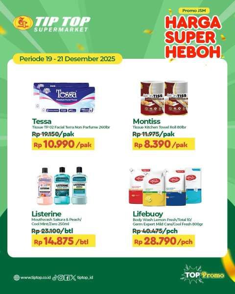 Cek deretan produk yang bisa didapatkan di promo JSM Tip Top terbaru pada pertengahan bulan Desember 2025 ini.