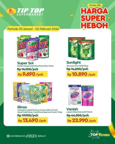 Ada banyak harga spesial untuk produk kebutuhan rumah tangga di promo JSM Tip Top selama 4 hari ini.
