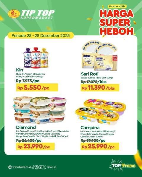 Promo JSM Tip Top terbaru ini hadir dengan diskon produk tertentu menjelang akhir tahun 2025.