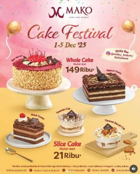 Promo Mako Bakery cake festival tersebut hanya berlaku untuk follower akun Instagram Mako Bakery saja.
