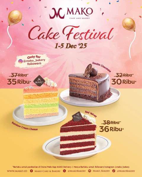 Dikutip dari @mako_bakery di Instagram, ada promo Mako Cake and Bakery cake festival selama 5 hari.