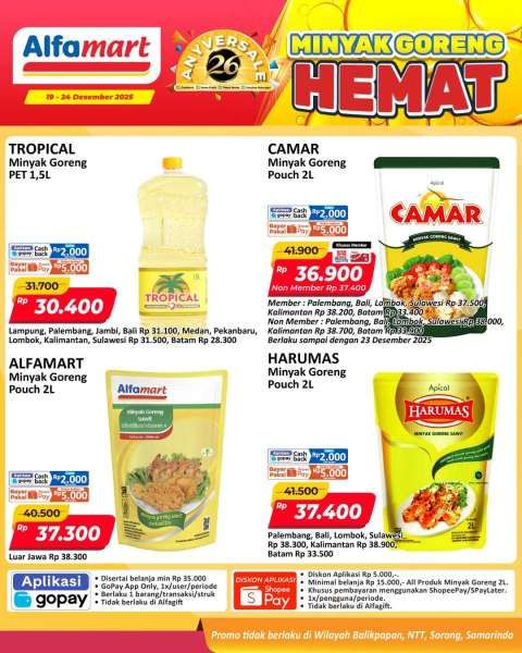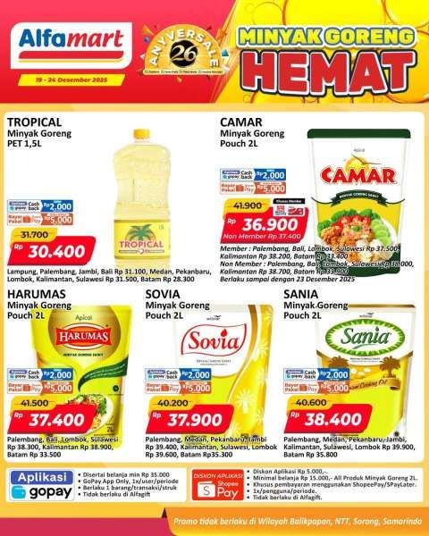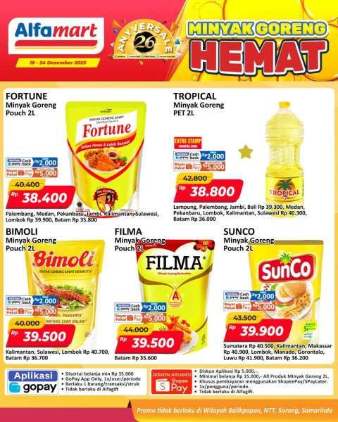 Alfamart juga merilis katalog promo minyak goreng hemat terbaru yang berlaku mulai 19-24 Desember 2025.