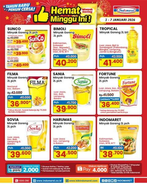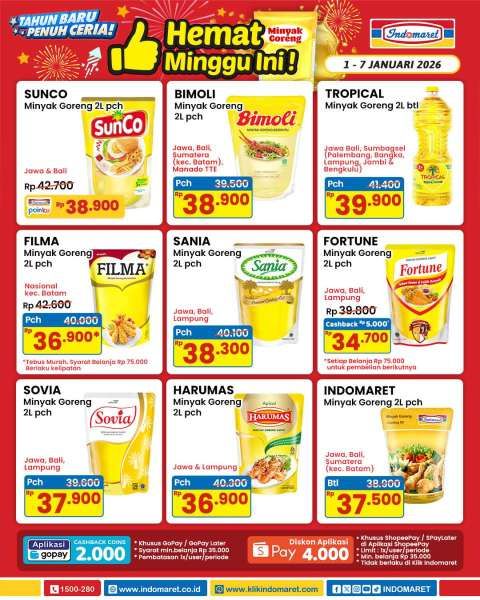 Promo minyak goreng di Indomaret yang terbaru pada awal tahun 2026 memberikan potongan harga selama 7 hari.