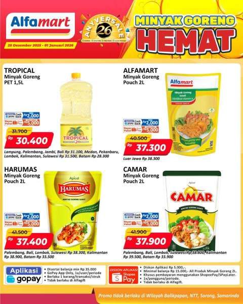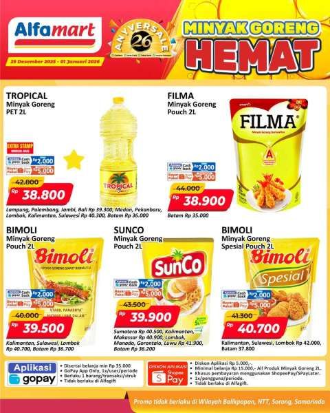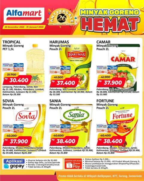 Dikutip dari @alfamart di Instagram, promo minyak goreng hemat berlaku mulai 25 Desember 2025-1 Januari 2026.